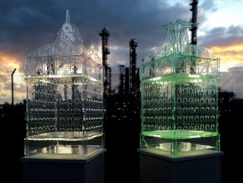 Tobias Zaft: FlexiPolis | 2015, Modulare Lichtinstallation (Auflage 100), Acrylglas, LEDs, Interface, 38 x 38 x 85 cm (Höhe variabel)