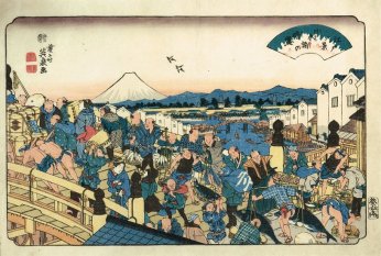 Die Nihonbashi-Brücke bei klarem Wetter, Format: yoko-ôban, Signatur: Keisai Eisen ga, Datierung: um 1840