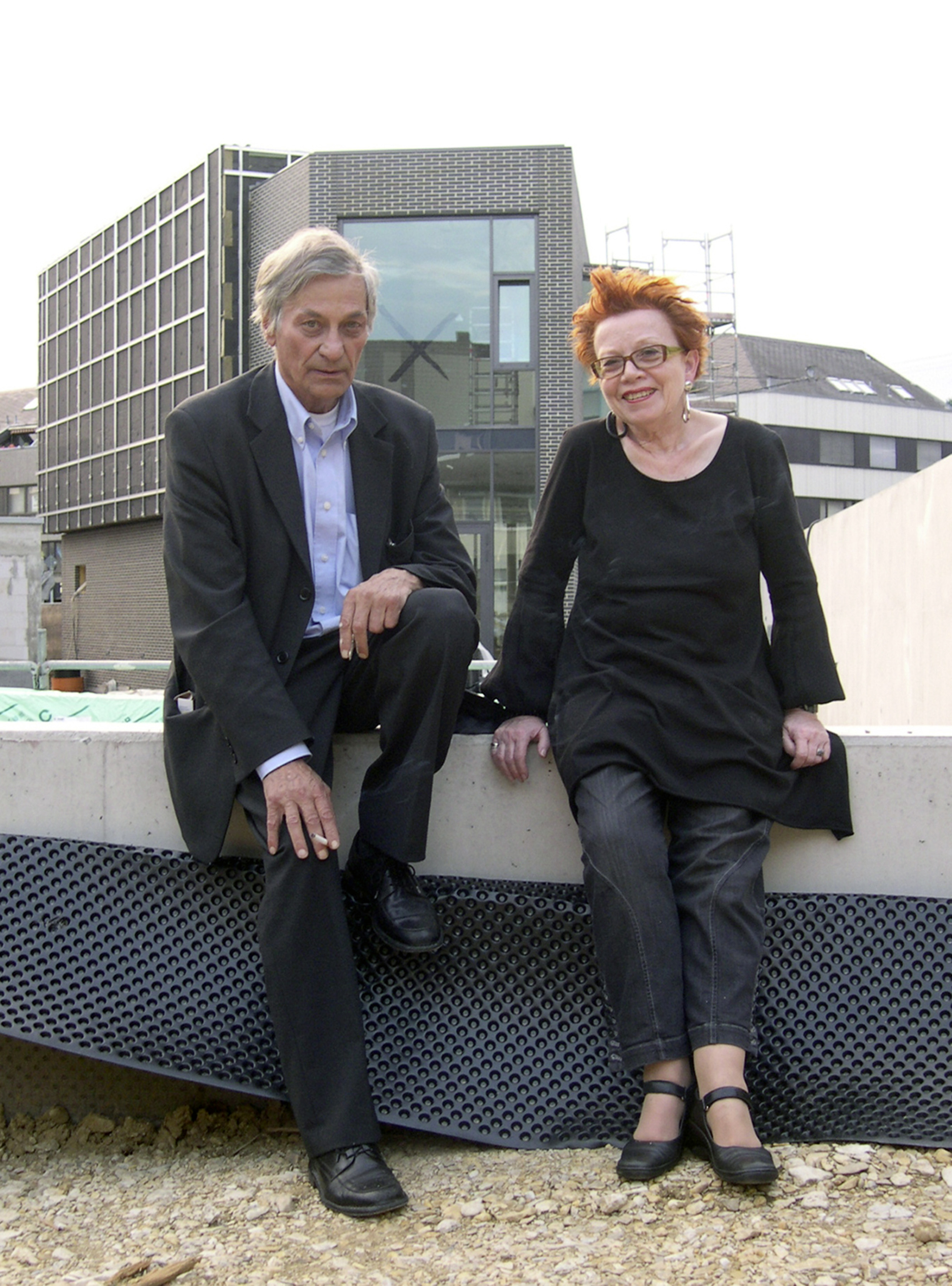 Der Kurator Jan Hoet und die Galeristin Karin Abt-Straubinger auf der Baustelle der Galerie